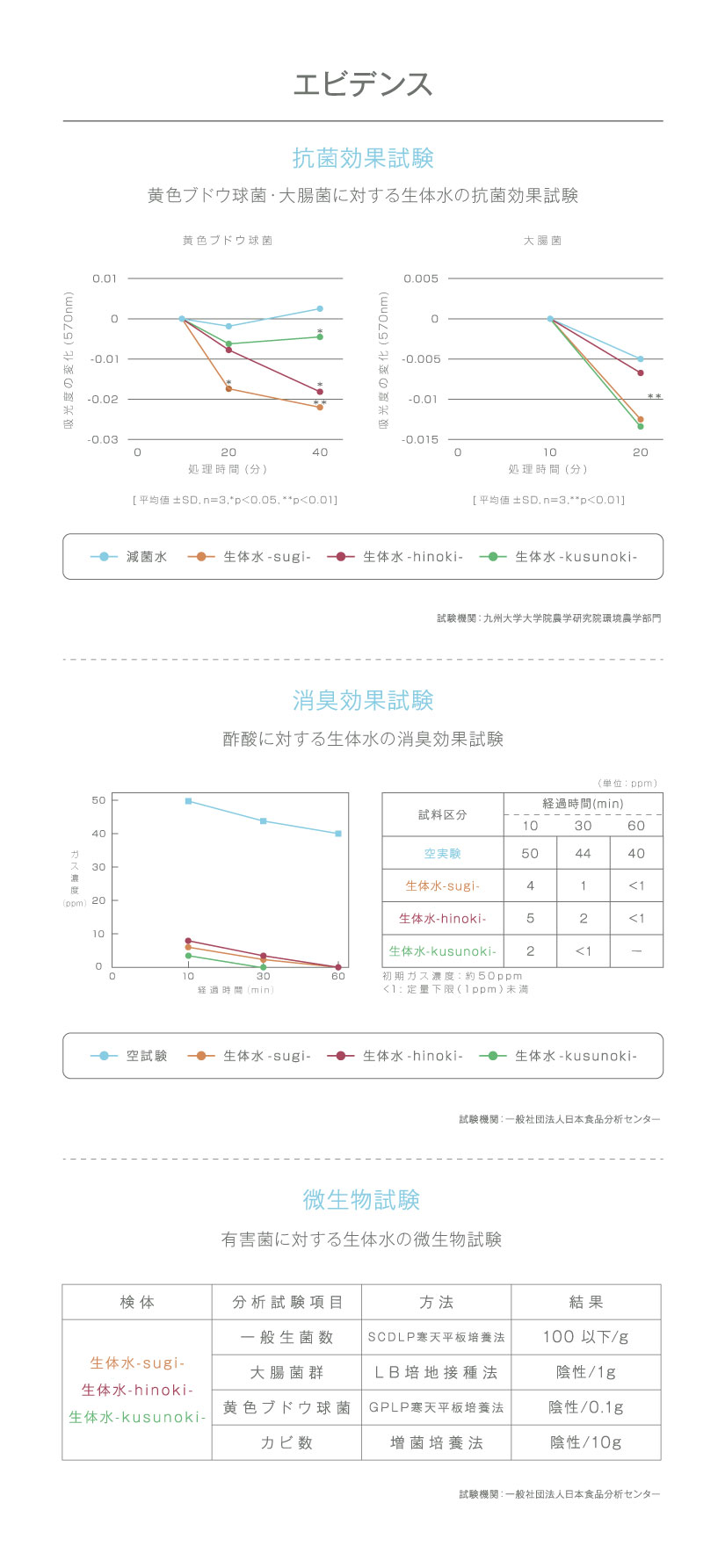 日本国内で育った無農薬のヒノキの枝葉から、水や溶剤を一切加えず、天然のヒノキの香りや有効成分をまるごと抽出したヒノキ枝葉エキスになります。生体水-hnoki-は、桧本来の芳香、抗菌成、消臭成分のすべてを天然100%のまま、私たちの生活空間にとりいれることができるフィトンチッドミストになります。